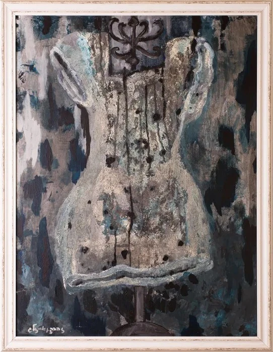 " שמלה כחולה " | טכניקה מעורבת, ממוסגר. (הוצג במוזיאון "BELLINI" בפירנצה, איטליה .) 66/86
